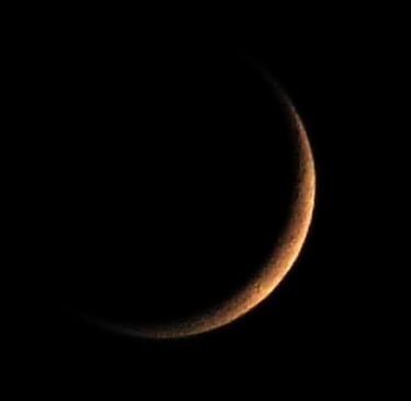 New moon sweetly rises,