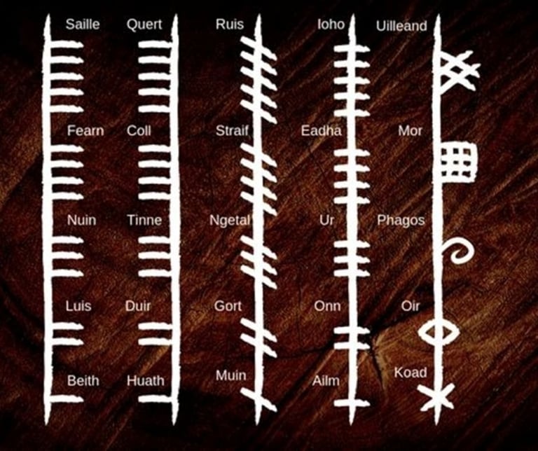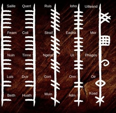 The Ogham (oh-am) is an alphabet that was created and used by the Celts. Each letter represents a tree or plant. The meaning of those trees in Druidic or Celtic lore is where we get the divinatory meaning of each of the letters.