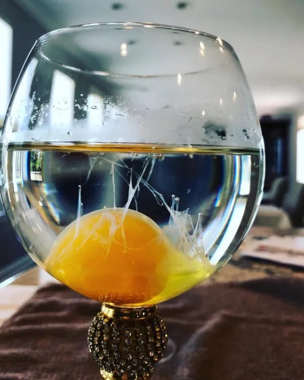 Once you have run the egg over your entire body and feel like it has absorbed all the negativity, grab your glass of water that you have sat out to get to room temperature. Carefully crack the egg into it, trying to keep the yolk all in one piece. Let the egg settle for 5 to 10 minutes so you can look into the water and interpret your results.